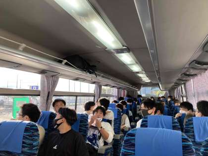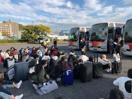 予定通り午前8時過ぎに,バスでホテルを出発し,姫路セントラルパークに向け,高速道路を走っています。到着は午前11時45分の予定です。これを一番の楽しみにしていた生徒は多いようです。