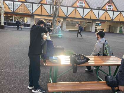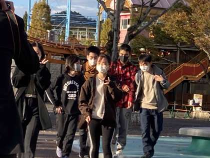 姫路セントラルパークを満喫して,集合場所に生徒がどんどん集合しはじめています。買い物をする生徒もいます。午後4時に集合完了。その後,記念写真を撮り,現地で解団式を行います。帰ってくるのは,午後6時30分から午後7時頃の予定です。