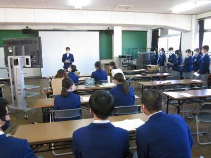 11月29日(月)6時間目,生徒会役員・専門委員長及び後期学級委員の認証式・引継ぎセレモニーをZoomで行いました。初めに,旧本部役員・旧専門委員長から挨拶がありました。今まで支えてくれた全校生徒への感謝の言葉と,新本部役員・新専門委員長への期待の言葉を述べてくれました。