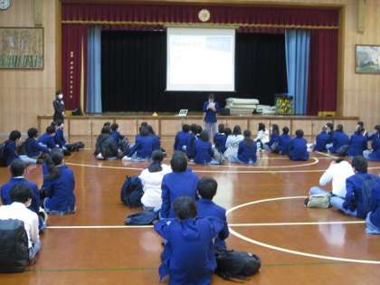12月3日(金),2年生が市内班別研修に取り組みます。午前8時25分に体育館に集合して,校外学習に向けての結団式を行いました。最初に校外学習実行委員長が,「1回目の校外学習ワクワクウォークラリーより,倍,楽しめるはずです。その場所にいるのは,班の仲間だけじゃない,地域の人,観光客の方もいるので,周りをよく見て,行動に移しましょう!」と仲間に語りかけてくれました。次に担当の先生がパワーポイントを使って,注意事項を伝えました。皆さん,よく聞いていました。そして,学年主任の先生が,「楽しい中には,ルールあり」と思ってほしい。今回の校外学習の成功が,修学旅行につながります。期待と応援をしています。」と話されました。