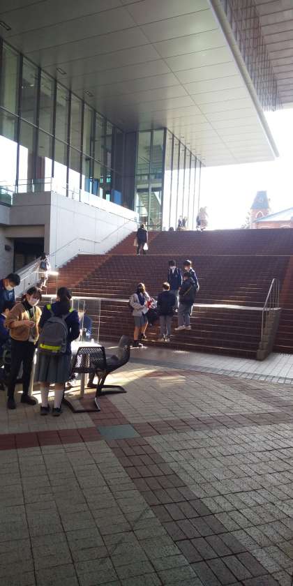 どの班もチェックポイントのある同志社大学に,必ず行くことになっています。いくつか小さなハプニングはあったようですが,指定された時間内に,すべての班が無事に同志社大学へやってきました。天候にも恵まれ,みんな楽しそうに班別研修に取り組んでいます。同志社大学の学食で昼食をとった後,残すポイントへ元気に向かっていきました。