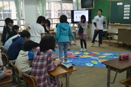 授業に対しては、みんな熱心に一生懸命頑張ってくれました。2つの小学校の子どもたち同士が、机をはさんで向かい合って勉強したり、一緒に合唱に取り組み、美しいハーモニーをつくったり、自分たちの作品を見せ合ったり、発表しあったりして、和やかな雰囲気の中で学習に取り組むことができたようです。