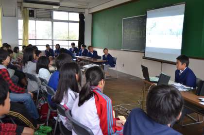 授業の後は部活動見学の予定でしたが、雨が本格的に降りだし、残念ながら室内で、事前に録画・編集したDVD(各部の活動のようす、キャプテンからの一言メッセージ)を見てもらうことになりました。