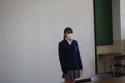 1年数学科の井上麻理江先生が,出産休暇のためお休みすることになり,お別れのあいさつをされました。なお,1月からは巽茂樹先生が後任として赴任する予定です。