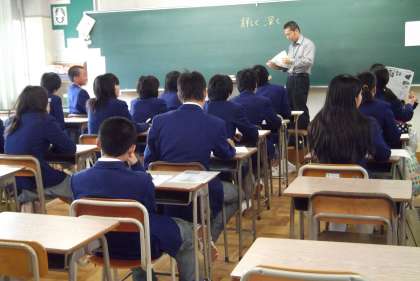 この写真は、3年1組と2組が体験した「数学」、「社会」の授業風景です