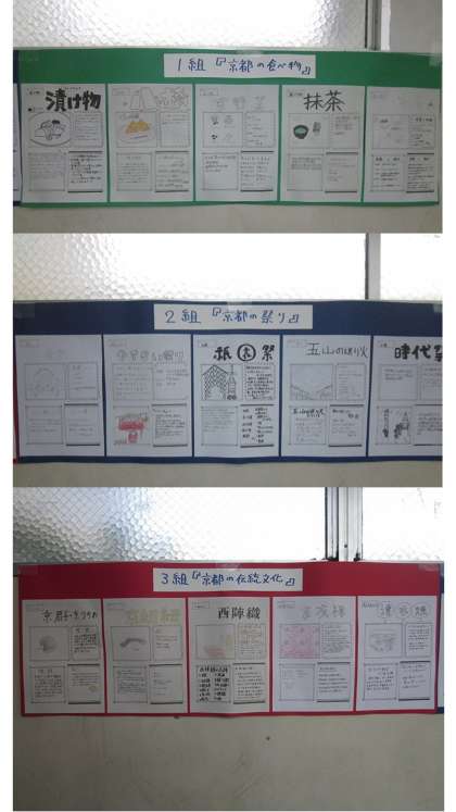 1組の小テーマは「京都の食べ物」で,「漬け物」「八つ橋」「京野