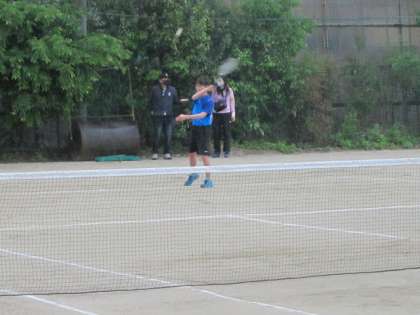 本校からは,2年生のペアと3年生のペアが出場しました。雨のため試合は途中で中止となり,後日延期となりました。途中から雨が降り出すあいにくのコンディションでしたが,各ペアとも全力を出し,最後まで頑張っていました。