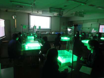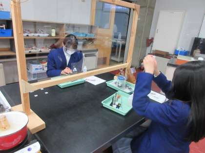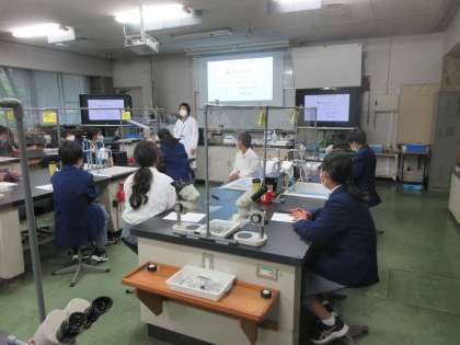 5月9日(月),1年生科学センター学習を実施しました。午後から,伏見区藤森にある京都市科学センターで,実験学習を行いました。いつもより早めに昼食を食べ,貸し切りバスで科学センターに向かいました。クラスごとに分かれて実験室に入り,1組は「液体X(エックス)のヒミツ(化学)」,2組は「調べなくっチャ(生物)」,3組は「なみなみならぬ波の科学(物理)」について,それぞれ学習しました。生徒たちは,意欲的に学習へ取り組んでいました。