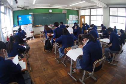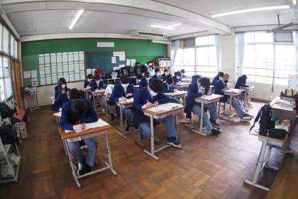 5月10日(火)2〜4時間目・11日(水)3〜4時間目,3年生は今年度1回目の学習確認プログラムに取り組みます。これは,京都市の小学校(ジョイントプラグラム)3年生から中学校(学習確認プログラム)3年生の児童・生徒が,学習の定着状況の確認をテスト形式で行うものです。今日を含む前後数日で,京都市の中学3年生が同じ問題に取り組みます。写真は2時間目の国語の様子で,さすがにみんな真剣に取り組んでいました。今日の3・4時間目に社会・数学,明日の3・4時間目に理科・英語,合計5科目のテストがあります。