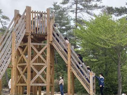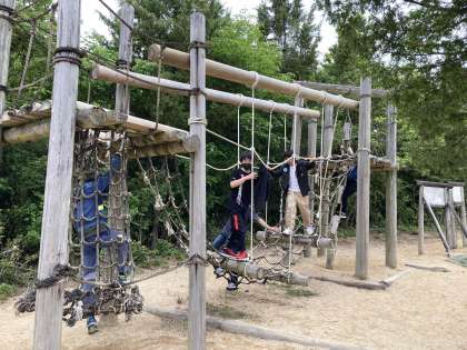 フィールドアスレチック・班別ウォークラリーの様子です。天気は,暑すぎず,日差しも強すぎず,アスレティックには,持って来いです。