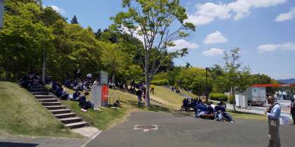 一行は,予定より5分遅れの12時5分に,山陽自動車道・小谷サービスエリアに到着しました。広島の青空が広がるよい天気のもと,持参したお弁当を美味しくいただきました。朝早くから準備していただいたお家の方に感謝,です。体調不良者はなく,みんな元気にしています。