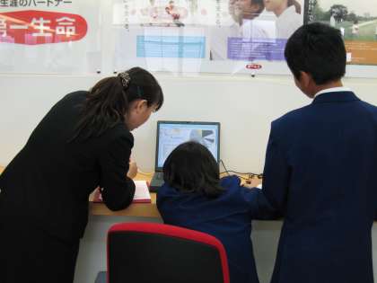 いよいよ、今日の学習の仕上げに入っていきます。コンピュータも活用して「生活設計の結果レポート」の補助資料を作成しています。