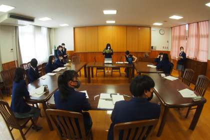 6月10日(金)5・6時間目に,生徒会役員生徒がランチルームに集合し各教室とオンラインで結ぶ,リモートによる生徒総会が開催されました。開会のあいさつに続いて,本年度の生徒会活動方針「ブランコ〜 fly high 〜」が紹介されました。ひまわりプロジェクトで,福島の子どもたちに笑顔を届けること,一緒に高みを目指していけるような学校づくりをすることが,具体的な活動です。続いて,各委員会からの活動報告,活動方針,決算報告,クラスから出された要望や意見に対する各委員会からの答弁が行われ,学級採決で賛成多数により総会議案は可決されました。