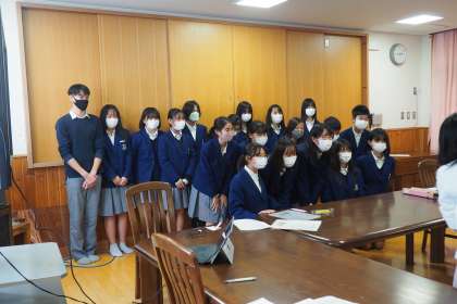 11月21日(月)6時間目,生徒会役員及び後期学級委員のオンラインによる認証式を行いました。司会を務めてくれたのは、選挙管理委員のみなさんです。初めに,旧本部役員及び旧専門委員長から挨拶がありました。今まで支えてくれた生徒全員への感謝の言葉と,新役員・委員長への期待の言葉を述べてくれました。