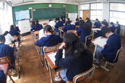 4月11日(火)の3・4時間目に、1年生はジョイントプログラムのテストに取り組みました。ジョイントプログラム・学習確認プログラムとは、京都市の小学校3年生から中学校3年生までの児童・生徒が、同じ日程で学習の定着状況の確認をテスト形式で行うものです。小学校ではジョイントプログラム、中学校では学習確認プログラムと呼んでいます。