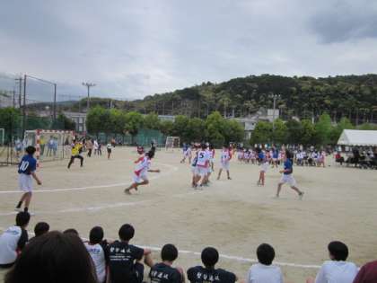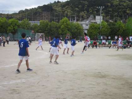 4月29日(土)松尾中学校会場で、男子ハンドボール部の春季大会予選リーグが行われ、深草中学校と桂川中学校のそれぞれの学校と対戦しました。それぞれの試合では、相手選手の攻撃を体を張ってブロックを行い、攻撃に転じるプレーが何度もありました。相手にひるまず、挑戦し続けられたことはとても大切です。対戦結果は2敗のため、残念ながら予選敗退となりましたが、今大会の挑戦で得たことを活かして、夏季大会に向けてさらなる飛躍を期待します。