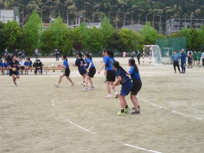 4月30日(日)松尾中学校会場で、女子ハンドボール部の春季大会予選リーグが行われました。神川中学校と四条中学校とそれぞれ対戦し、洛西中学校はチーム一丸となって一生懸命プレーをしました。攻守に活躍をしましたが、残念ながら予選敗退をしてしまいました。最後まで相手チームに対して挑もうとするプレーは、今後の成長につながると思いました。これからの活躍を期待します。