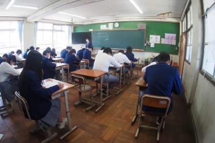 5月16日(火)2〜4時間目・17日(水)3〜4時間目、3年生は今年度1回目の学習確認プログラムに取り組みます。これは、京都市の小学校(ジョイントプラグラム)3年生から中学校(学習確認プログラム)3年生の児童・生徒が、学習の定着状況の確認をテスト形式で行うものです。今日を含む前後数日で、京都市の中学3年生が同じ問題に取り組みます。写真は3時間目の社会の様子で、さすがにみんな真剣に取り組んでいました。今日は国語・社会・数学、明日の3・4時間目に理科・英語、合計5科目のテストを実施します。