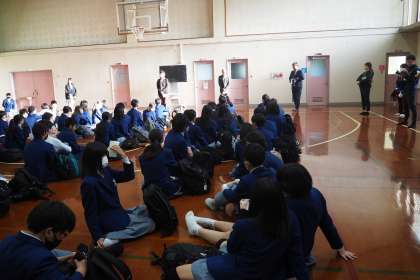 修学旅行のスローガンは「楽学両道」で、「楽」は友達と喋ったり仲間と協力して楽しむこと、「学」あ平和学習で学んだ原爆のこと、現地へ行き被災者の皆さんの気持ちや当時のことを考えること、みんなで集団行動についてまなぶことを意味しているとのことです。みんなで最高の修学旅行になるよう、頑張ってください。