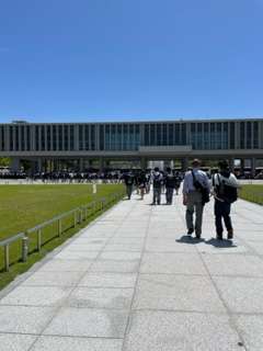 平和記念公園で昼食の後、広島平和記念資料館へ戦争の悲惨さと平和の尊さを学びにやってきました。みんな、学ぶ気持ちをしっかりと持ち、参加してくれているそうです。なお、資料館は多くの修学旅行生と世界各地の観光客とでかなり混雑しているそうです。時間通り入れず、入り口前で30分以上待ったそうです。