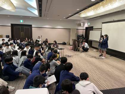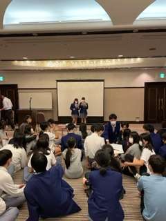 続いて、昨日の夕食後に行われたレクレーションの様子です。司会の人の挨拶から、すでにみんな大盛り上がりだったそうです。実行委員会がたくさん準備してくれた、「イントロ、私は誰でしょうクイズ」「有志による歌」など、ホテルはG7よりも盛り上がっております!とのこと。学年の絆が深まり、準備してくれた実行委員の苦労も報われ、素晴らしいレクリエーションになったようです。