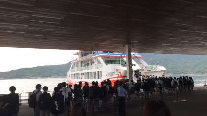午前7時30分、バスとフェリーで、2日目最初の目的地である宮島へ向かいます。