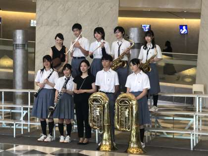演奏後は緊張から解放されて、みんなで笑顔いっぱいの記念写真を撮っていました。コンクールの結果は銅賞でした。この経験を糧に、今後も様々な発表の場で、活躍を期待しています。