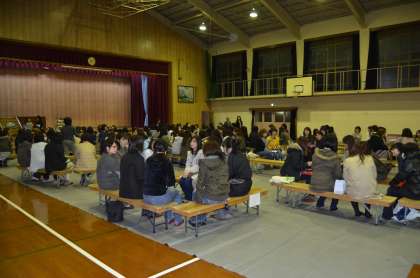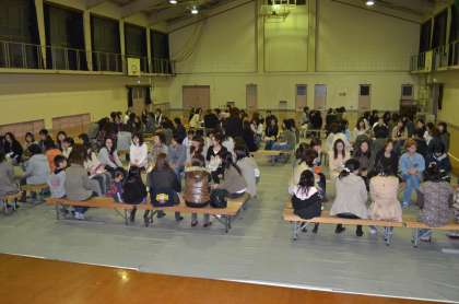 これも、体育館で学級ごとに分かれて話し合いを行っているときの写真です。みなさん真剣に話し合いを進めておられました。