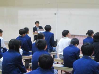 本日6限に、1年生の非行防止教室が開催されました。京都府警から教育委員会へ出向しておられる担当課長さんが、今年も講師として来校され、お話を聞きましました。一言一言に説得力があり、生徒の皆さんは集中して聞いていました。「いじめ」や「SNSトラブル」など、何が原因で発生するのかをよく考え、相手の立場を理解してみんなが安心して過ごせるように、より良い人間関係を築いていくことが大切です。その過程で行き違いや思い違いによるトラブルもあるかと思いますが、その時にはしっかりと気持ちを伝えてわかりあうことが大切なのだと感じました。