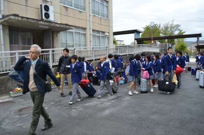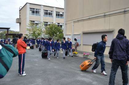 「気をつけて」「頑張っておいでやー(いったい何を頑張るんや??)」