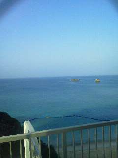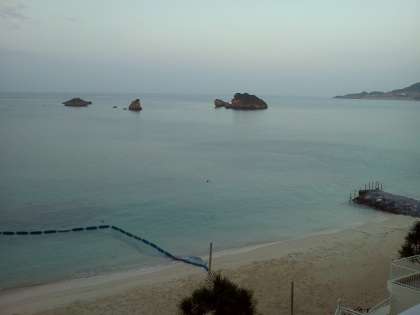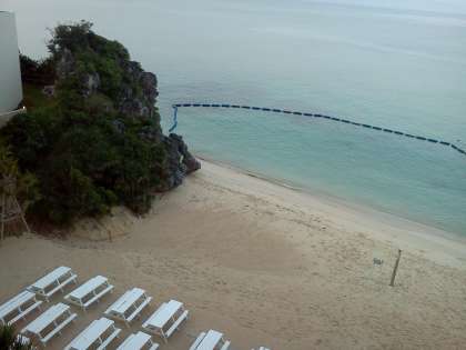 部屋の窓の下には、砂浜が広がっています。