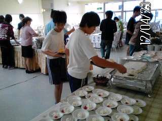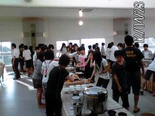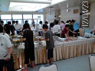 朝の目覚めとともに“美しい海”をながめ、顔を洗ったり、荷物の整理をしたりして、次は朝食です。昨日と同じように、バイキング形式となりました。