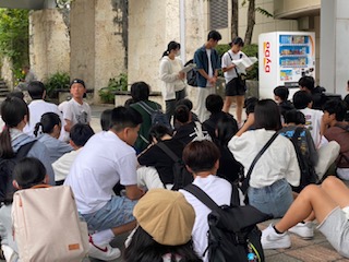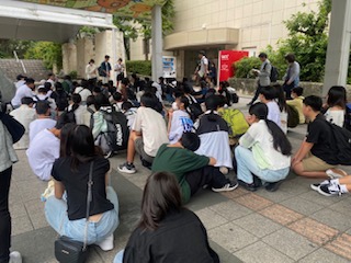 今から、グループに分かれてお土産を買ったり昼食を食べたりします。
