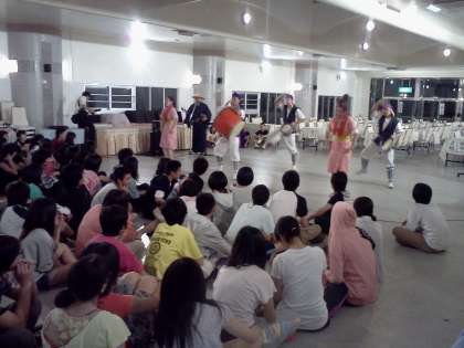 写真が送られてこないので、実際にどのようなようすかはわかりませんが、途中、洛西中学校のレク会場に乱入(?)してきた“エイサー隊”の踊りのようすは手に入ったので、ここでその写真をお見せします。