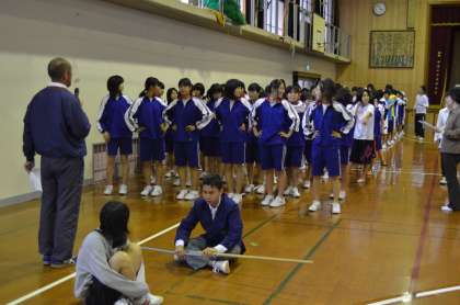 初日の最初の段階では、とても“行進”と呼べるようなものにはなっていなかったのですが、体育館を何周も腕を振り、足を上げ回っていくうちに、少しずつそれらしく“行進”できるようになってきました。