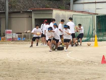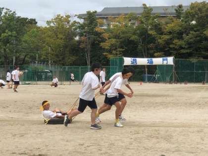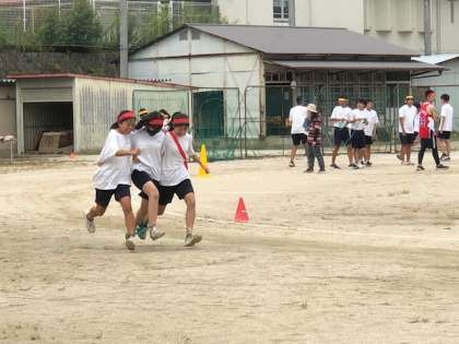三人四脚にタイヤ引きみんなで協力してがんばりました