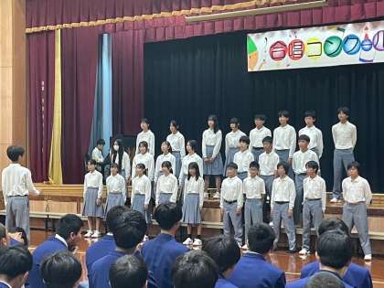 はじめての合唱コンクール、舞台からの視線には2・3年生の先輩たちや保護者の方々があり、少し緊張の様子が伝わってきます。