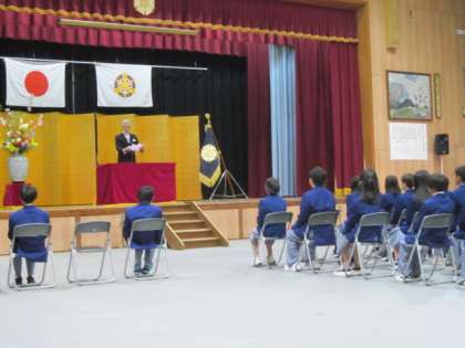 国歌・校歌斉唱の後、校長先生の式辞があり、