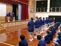 春めいた日の午後から「新入生を迎える会・生徒会オリエンテーション」が、生徒会本部の主催で行われました。吹奏楽部の演奏で1年生が入場し、生徒会本部から中学校での生活についての説明やクイズが行われ、各種委員会の取り組みついても説明がありました。その後は、2年生・3年生の各部代表の生徒による部活動紹介が行われました。部活動は楽しみにしている1年生も多いと思います。1年生は先輩の実演や説明をしっかりと聞いていました。今後の部活動見学や体験で、自分に合った部活動を見つけてほしいと思います。2・3年の先輩たちの心のこもった迎える会の中で、熱心に聞き入る新入生の姿が印象的でした。楽しく優しい午後のひと時でした。