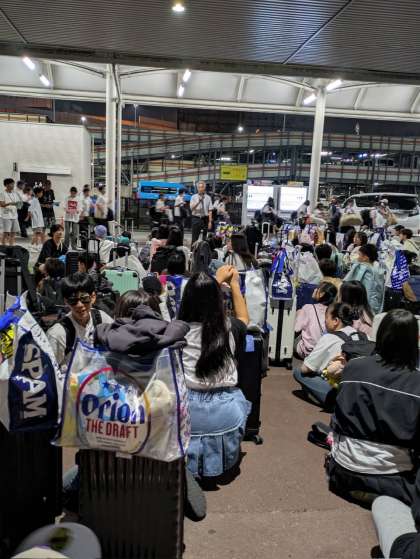 修学旅行は飛行機の離陸時間が少し遅れていたため、解団式を先ほどより行っています。