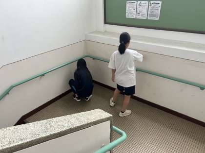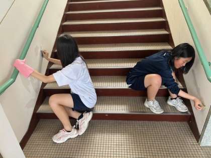 本日、事業所が定休日等の皆さんが学校で階段や廊下の壁の拭き掃除をしてくれました。
