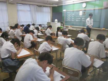 昨日6月23日(月)から明日25日(水)までの3日間、全校で第1回総括テストが行われています。今回のテストは、1学期のまとめとなる総括テストです。1・2・3年生の全校生徒たちは、真剣に問題に取り組んでいました。6月に入ってからの天気は、日を追うごとに気温が30度を超えており、体調管理を万全にして実力を存分に発揮してください。
