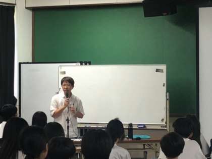 難しいテーマではありますが、生徒たちにとってわかりやすく、考えやすい内容から入ってお話ししてくださったので、回答する場面では楽しそうに、考える場面では真剣に考え、しっかりと話を聴くことができていました。