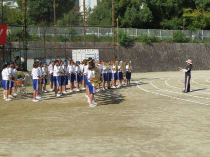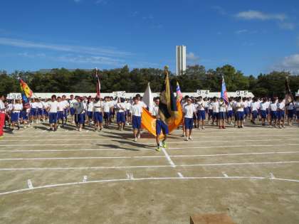 ※ごめんなさい。時間の関係で、写真が少ししか掲載できません。まずは入場行進から。吹奏楽部のファンファーレが鳴り響く中、行進が始まりました。以下、開会式の風景をお伝えします。残りは明日頑張ります!
