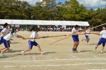 そうかと思えば、3人で棒を奪い、折角自陣まで運んでいったのに、相手チームの6人がその棒に食らいつき、逆に一気に奪い返される場面が見られました。見ていてとても楽しかったです。