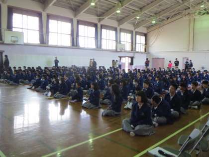 <その1>、<その2>にある写真は、着任式と始業式のときの体育館のようすです。