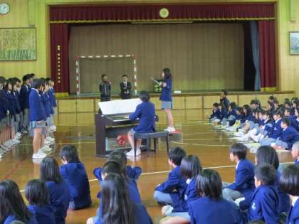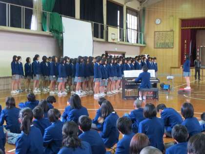 以下の写真は、前半の「新入生歓迎会」のときの3年からの出し物(合唱)のようすです。