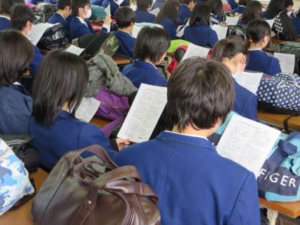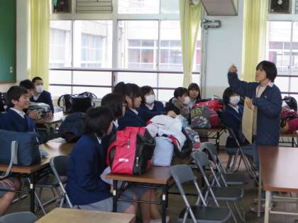 事前指導では、まずは全体が同じ場所に集まり、最初に校長先生からの激励の言葉があり、次に係の先生から諸注意がありました。