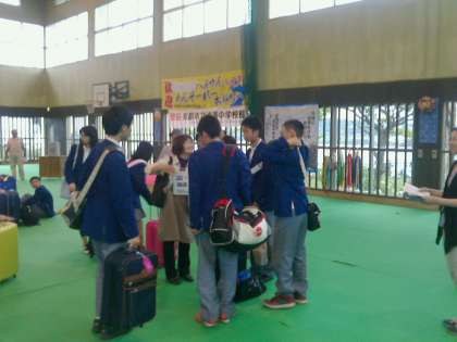 午後5時,予定通り本部村に到着し,入村式を行いました。歓迎の踊りから始まり、地元の方の歓迎の挨拶、生徒と校長からのお礼の言葉・挨拶と続き、その後、三々五々にそれぞれのお宅へと向かいました。全員元気にしています。この後はそれぞれホームステイ先で,交流・体験活動をし食事もさせていただきます。学年全員がそろうのは,明日お昼12時です。天気予報では午前中雨が心配ですが,一生の宝となるようないい思い出をたくさん作れると思います。