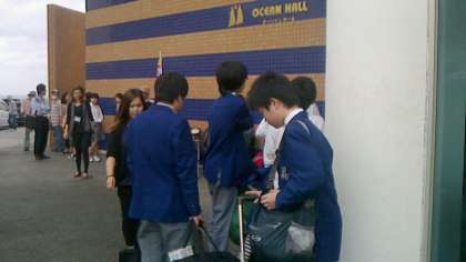 昼食は,ホテルでカレーライスです。午後からは,マリン体験。カヌー,サバニ(琉球で古くから使われてきた漁船),バナナボートを順番に楽しみます。夕食はホテルに戻って,そして夜はレクレーションと,盛りだくさんのメニューです。